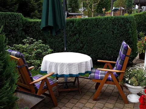 Pohodlný apartmán v přízemí ve výšce 950 m s výhledem na Keilberg, který je s 1244 m nejvyšší horou Krušných hor. Dům se nachází v těsné blízkosti centra města (cca 300 m) a na velmi klidném místě.