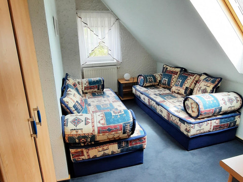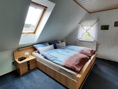Z chodby vede schodiště do 1. patra, kde se nachází 2 samostatné ložnice (jedna s manželskou postelí a jedna se 2 oddělenými postelemi).