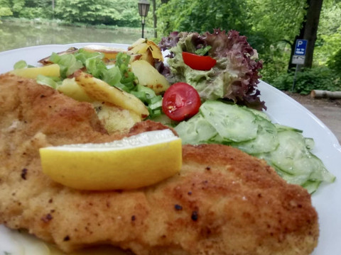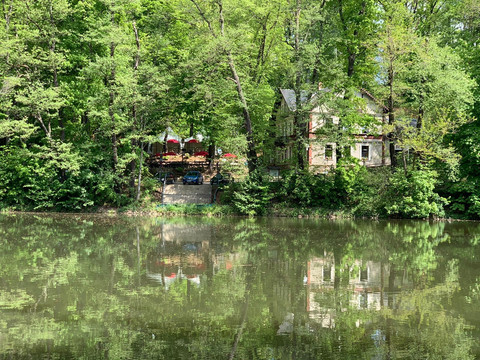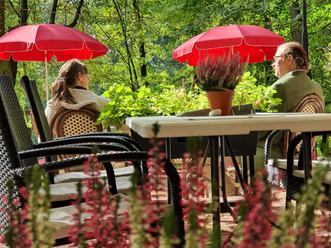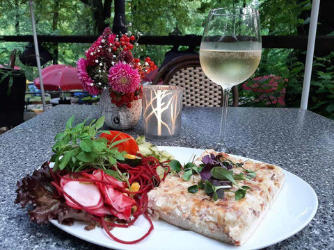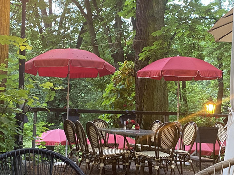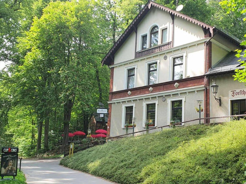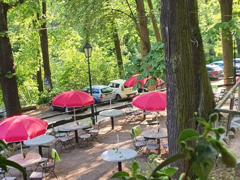Lesní háj je od začátku 20. století nádherně zasazen v idylickém Sahnparku. Obklopen vysokými, starými stromy se nachází u Gondelteichu, mezi zvěří, letním Sahn koupalištěm a známým zimním stadionem. Odjakživa provozováno jako restaurace a rekreační místo, od poloviny roku 2021 jsou k dispozici také nově zařízené apartmány a možnosti přespání až pro 9 osob. Uspořádání je relativně flexibilní, takže prostory mohou být využívány jak pro páry, přátele, rodiny, tak i pro obchodní cestující. Restaurace nabízí podle ročního období odpovídající kulinářskou nabídku.