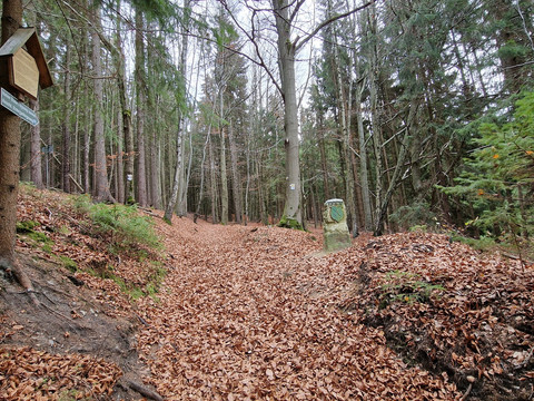 The king of the area is the Erlbach Mountain Route! It is a real mountain route with challenging inclines and long, lonely forest path sections. It winds its way often steeply uphill for 22 km, leading for hours on paths through dense border forests. Often just a footpath, it follows the border from Hohen Stein over Kegelberg and further past Schwarzbach spring to the Drei Rain stones. After passing the raft ponds, it continues over the Bergsandner viewpoint to Gopplasgrün and from there via the Sporn execution site and the Spornreuth viewpoint back towards Erlbach Market Square.