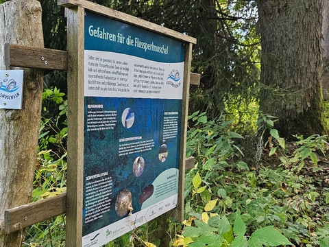 Today, pearl fishing has long been discontinued, yet the freshwater pearl mussel is acutely endangered. Its complex ecology and high habitat requirements allow it to survive only in an intact and natural ecosystem. The "Freshwater Pearl Mussel" experiential trail offers you the opportunity to explore the biology and habitat of this extraordinary mussel in the landscape and to learn more about its cultural history and current conservation efforts.